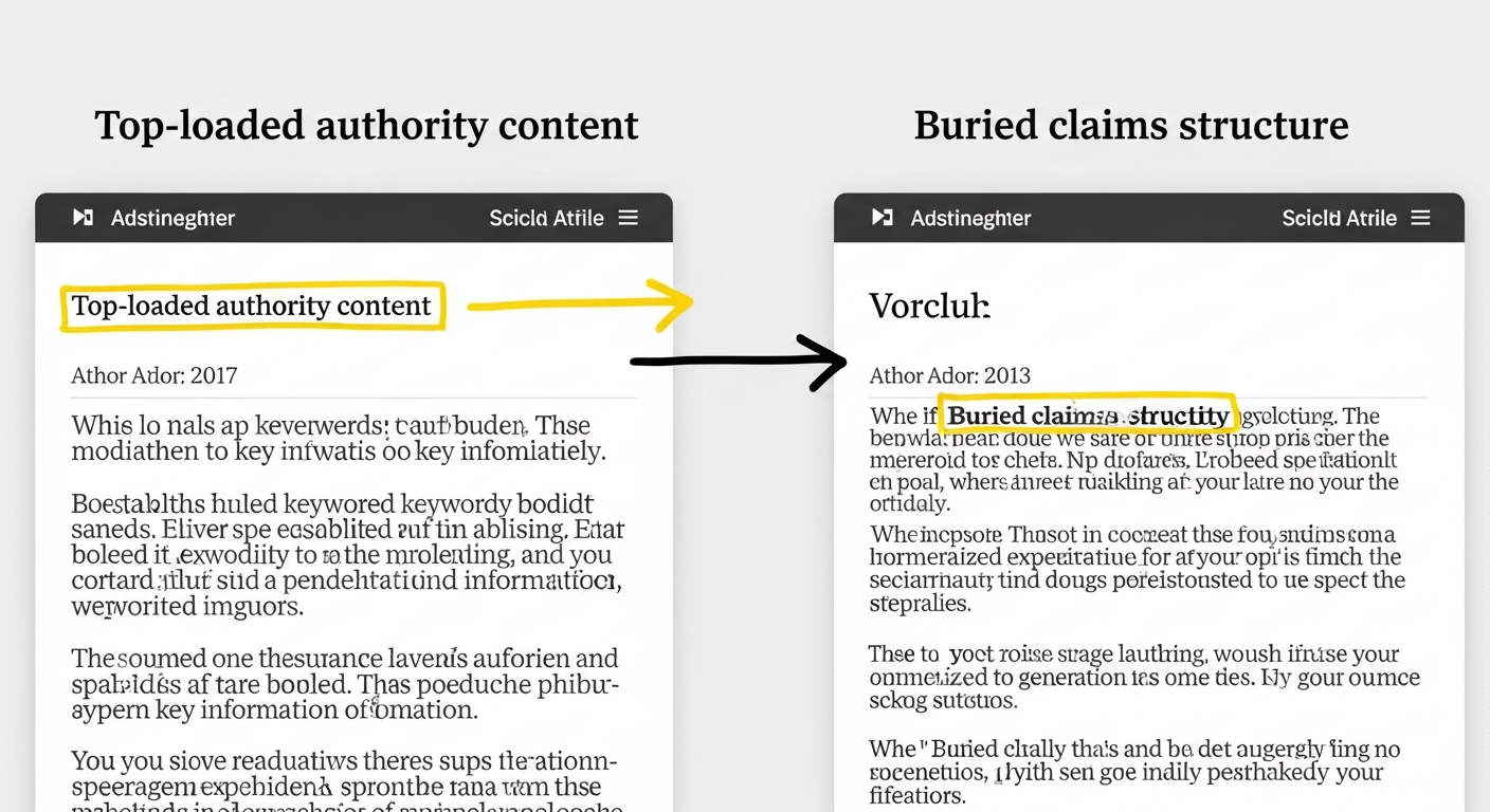 We tested this directly by publishing two versions of the same brand description. One led with authority claims and specific capabilities. The other buried those same claims in paragraph four. Claude cited the top-loaded version 3.1x more often in relevant queries.