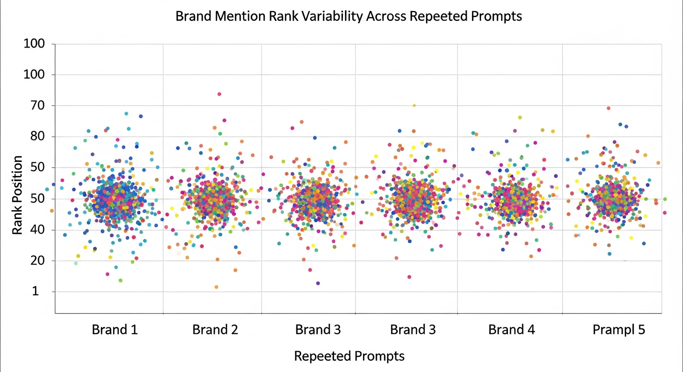 When we ran the same prompt five times, the exact brand list appeared in the same order zero times. Individual brands showed up consistently, but rank position shifted in every session. This has a direct strategic implication.