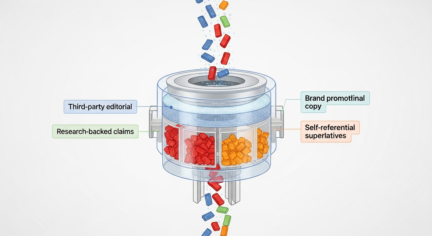 We tested 40 pages from brands that appeared rarely in Claude outputs despite strong third-party coverage. A consistent pattern emerged: their owned content was heavy with superlatives, self-comparisons, and claims without external corroboration.