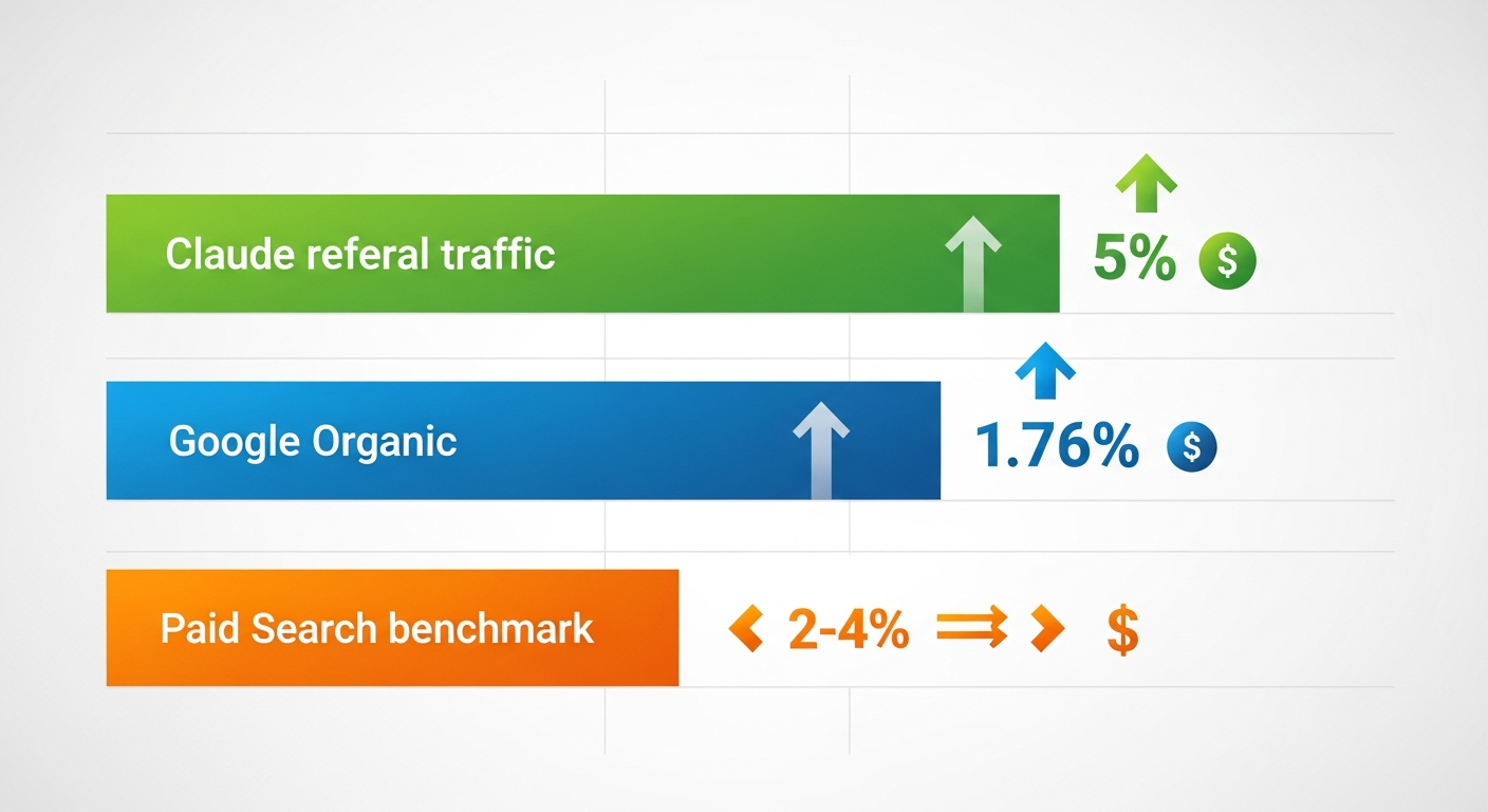 The volume may be smaller than organic search today, but the quality signal is clear. Someone who asks Claude for a vendor recommendation and then visits a specific brand's site arrives with much higher purchase intent than a typical search visitor.